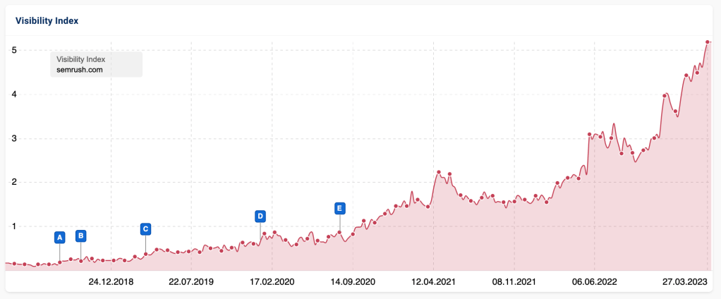 Whenever Google announces any sort of core update or I notice a significant increase or decrease in organic traffic to one of my websites, Sistrix is one of the first places I turn. Sistrix’s Visibility Index can give you a good idea of how your site is performing over time and in relation to your direct competitors. Another great feature is the “Compare SERPs” option, which shows you how the SERPs for a certain keyword have changed over time (and how search intent has shifted).